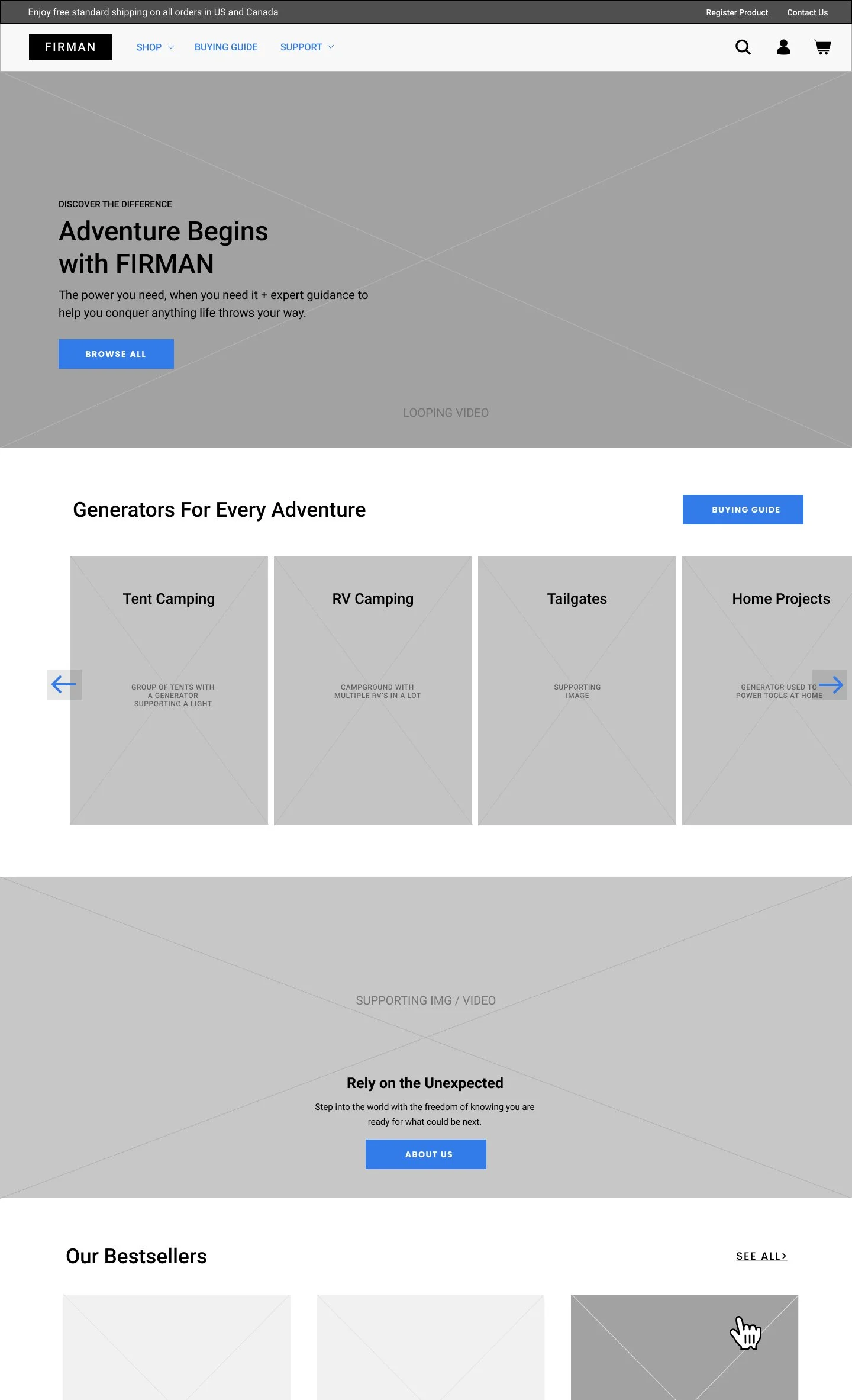 Customers understood the purpose of generators but lacked the knowledge to pinpoint the type of generator they needed. My primary focus for the homepage was to connect users to a lifestyle or use case versus having them choose a generator at random.