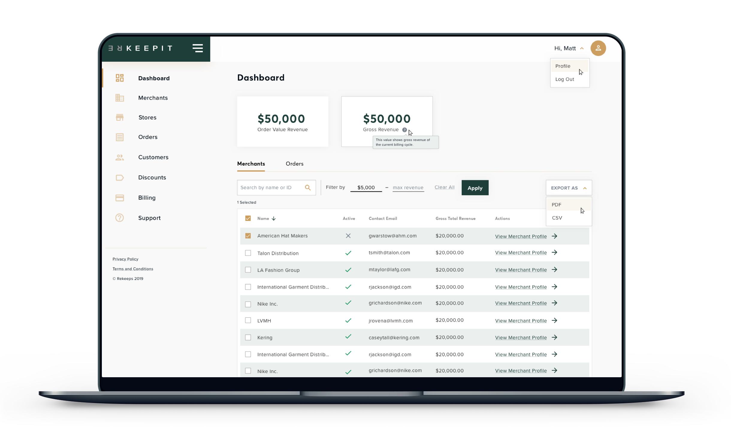 Revenue was a data point with high significance to ReKeepIt stakeholders and most commonly used to pull reports. That warranted the displayed numerical ranges so a user can quickly input parameters around their view.